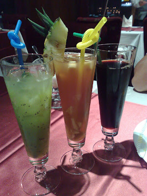 由左至右是奇異果果汁、鮮果茶(夏威夷之戀)、冰滴咖啡