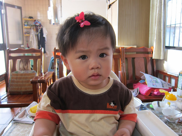 最近阿媽教他頭髮、眼睛、鼻子、嘴巴和耳朵,已經能指對位置了