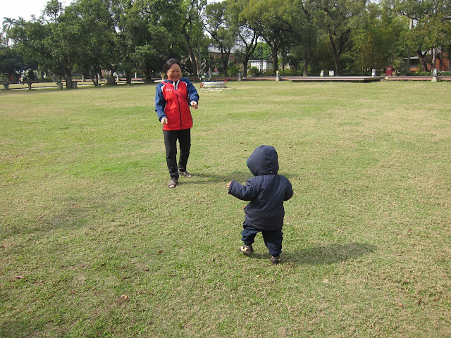 現在學會走路,喜歡自己到處走,反倒變成是我們跟著他東看西看