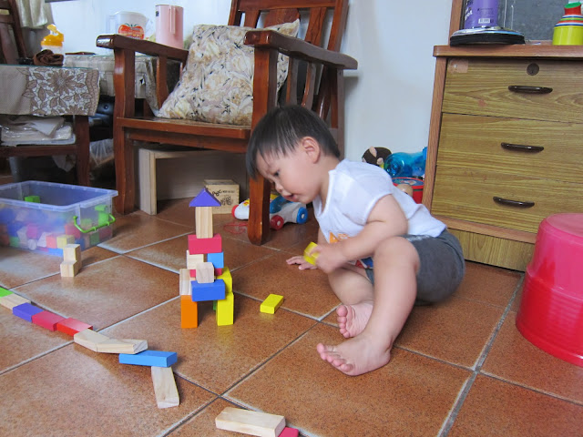 認真玩積木,但大部份時間都在破壞別人堆疊好的積木XD