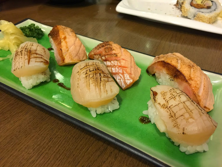 干貝壽司和鮭魚肚壽司