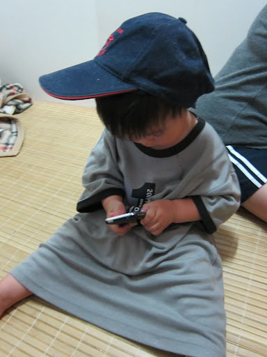 認真地把玩阿姨的手機