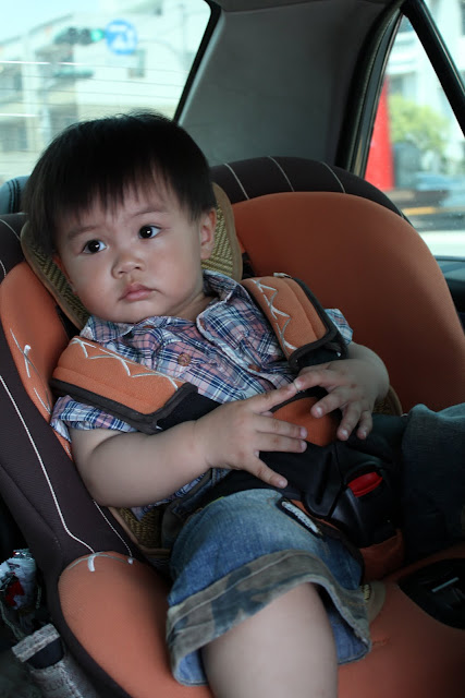 從小就讓他坐汽座真的是一件對的事,如果要開車出門,有時他會很自動地爬上汽座
