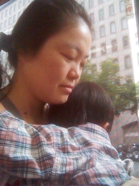 第一次坐公車,哭了,之後坐公車都要這樣抱著