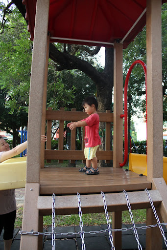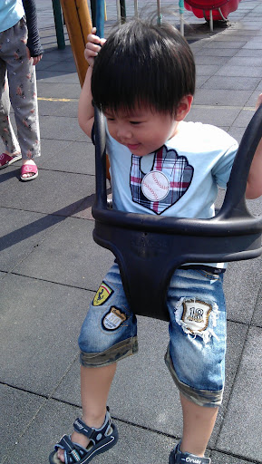 阿媽說,自從某次從溜滑梯上「滾」下來,就不太敢玩