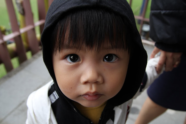 親愛的兒子,運動就是要自己走呀~不是讓阿媽抱著你運動唷!